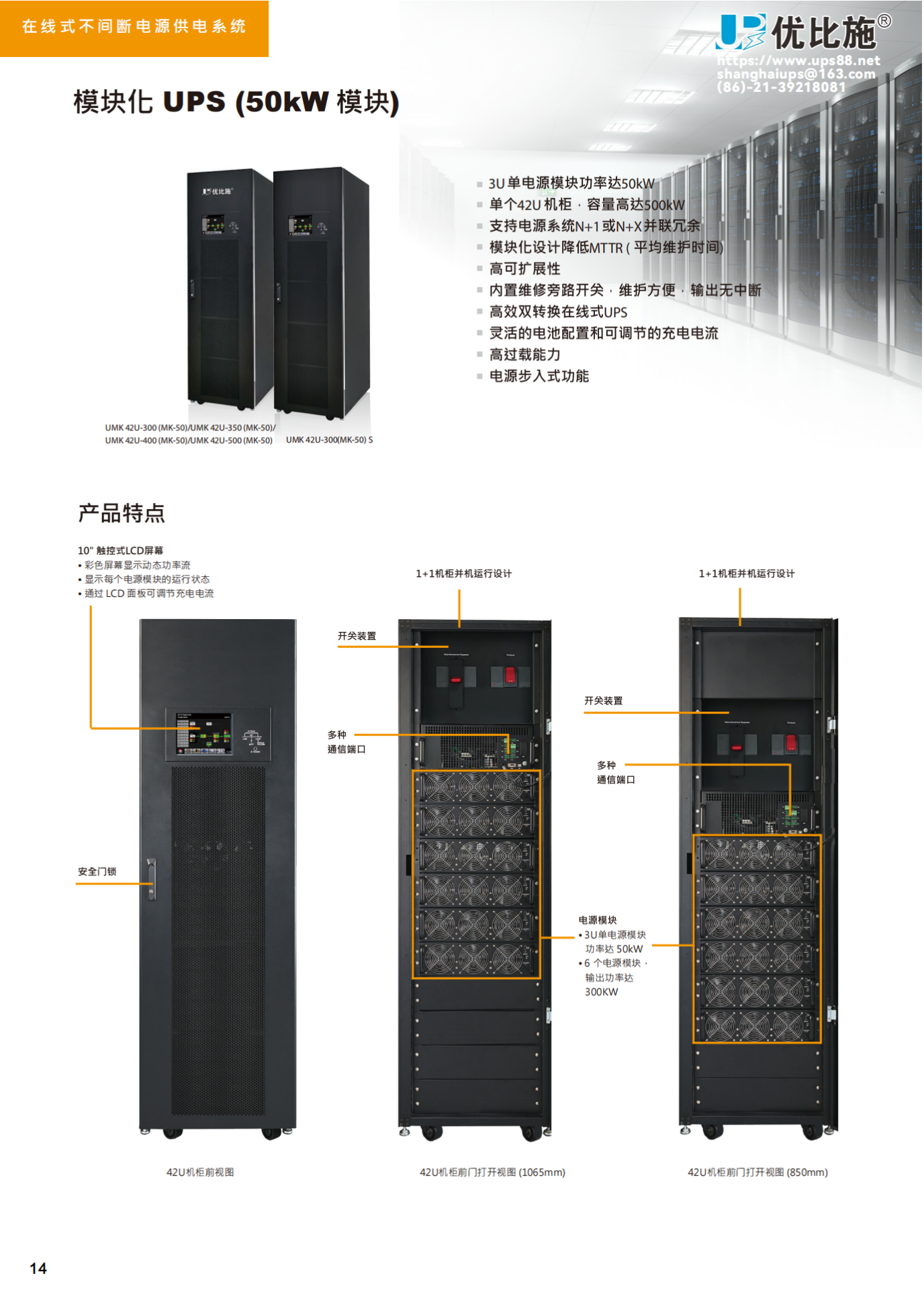 3U单电源模块功率达50kW单个42U机柜·容量高达500kW支持电源系统N+1或N+X并联冗余模块化设计降低MTTR(平均维护时...